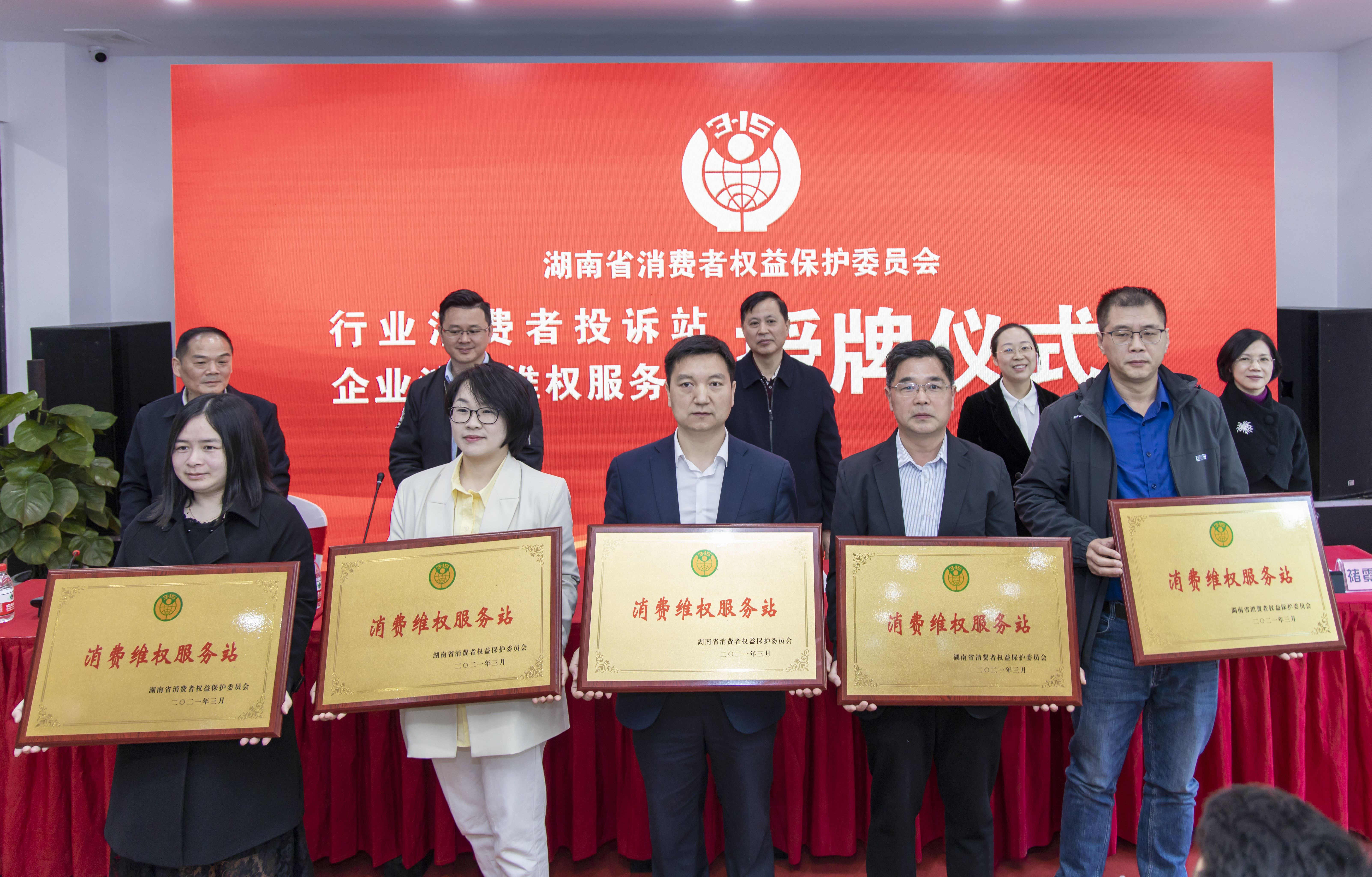 (3月25日,湖南省消保委為湘佳股份等10家企業(yè)頒發(fā)“消費維權(quán)服務(wù)站”牌匾。)